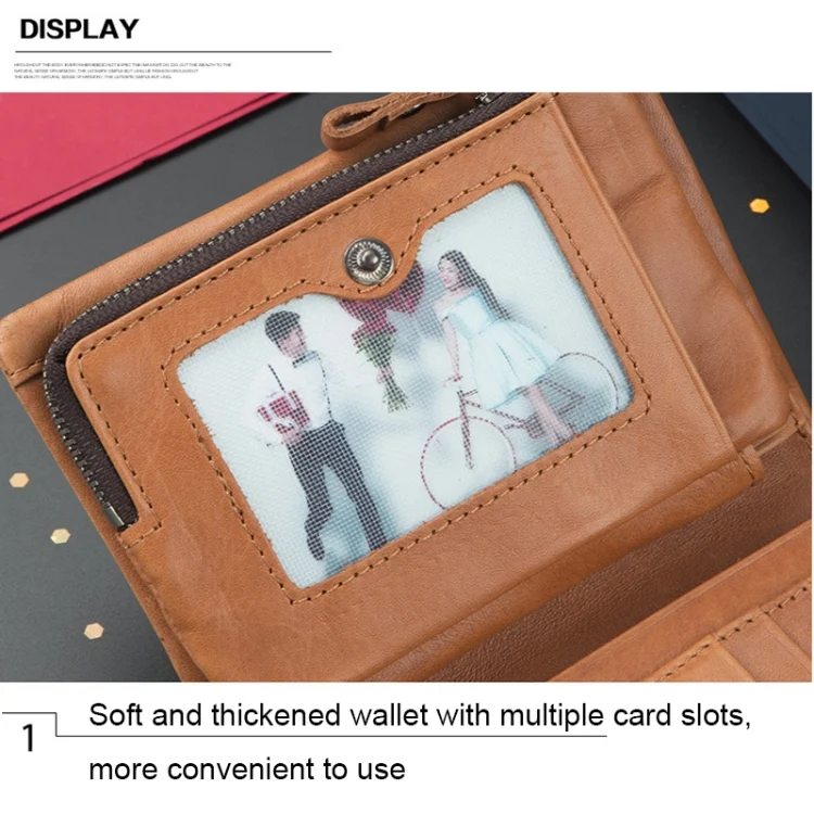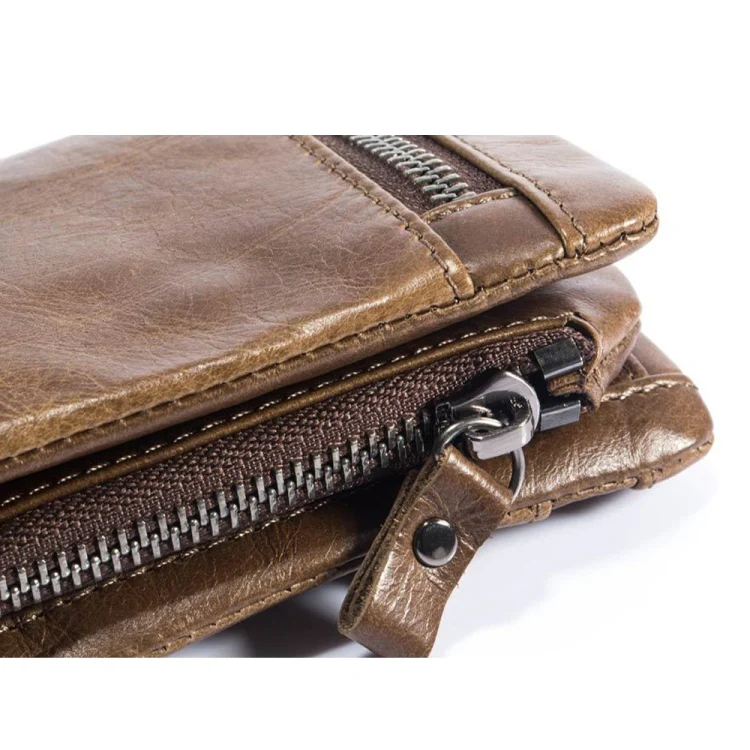 BULL CAPTAIN 03 Large-capacity Folding Multi-card Slot Cowhide Zipper Wallet Coin Clip
