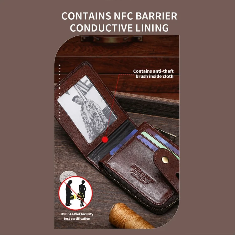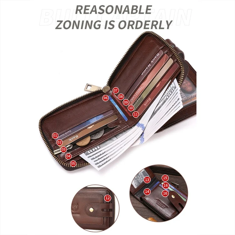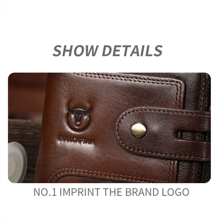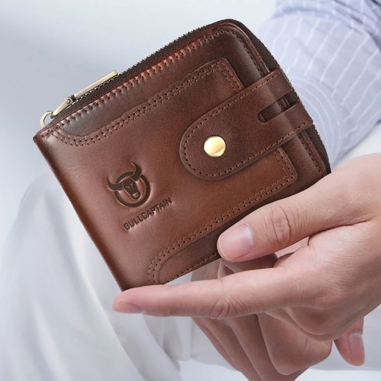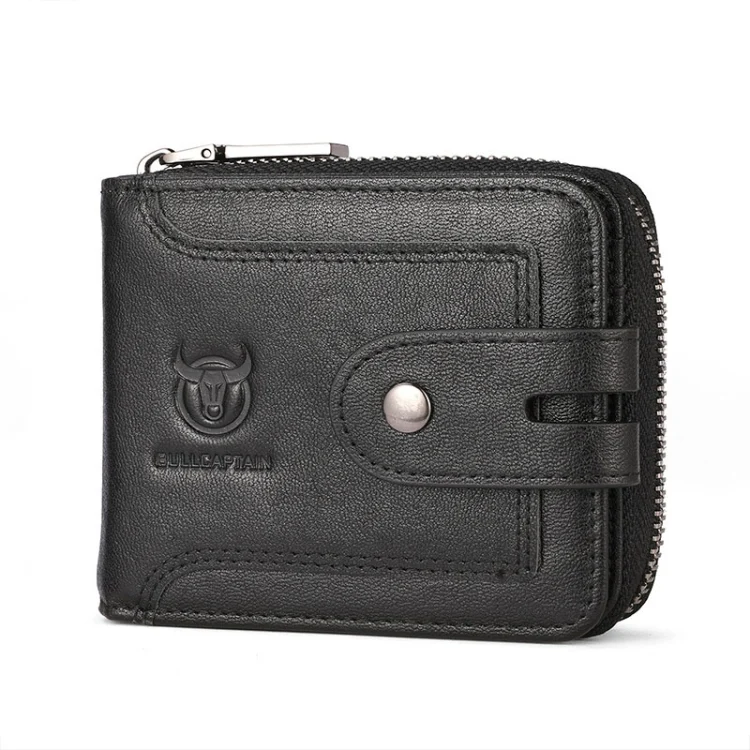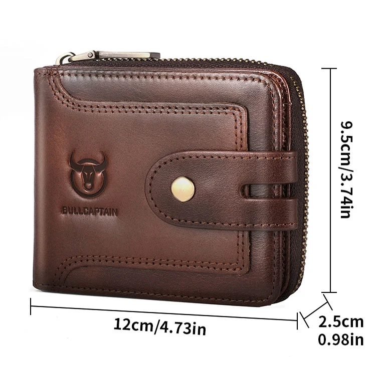 BULL CAPTAIN 232 RFID Anti-Theft Cowhide Men Zipper Wallet Vintage Business Card Holder