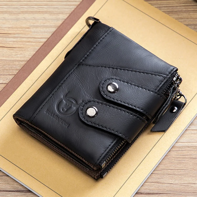 BULL CAPTAIN Leather Three-fold Zipper Wallet For Men