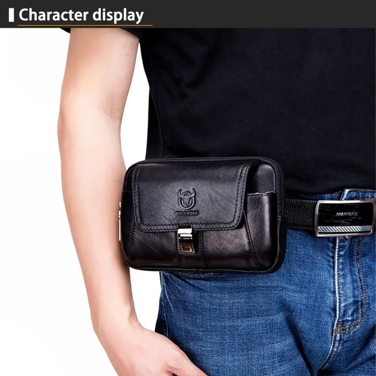 BULL CAPTAIN Multifunctional Leather Mobile Phone Small Waist Bag For Men