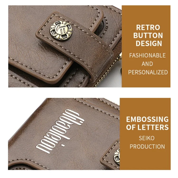 DEABOLAR Men Wallet Horizontal Zipper Retro Coin Purse Card Holder