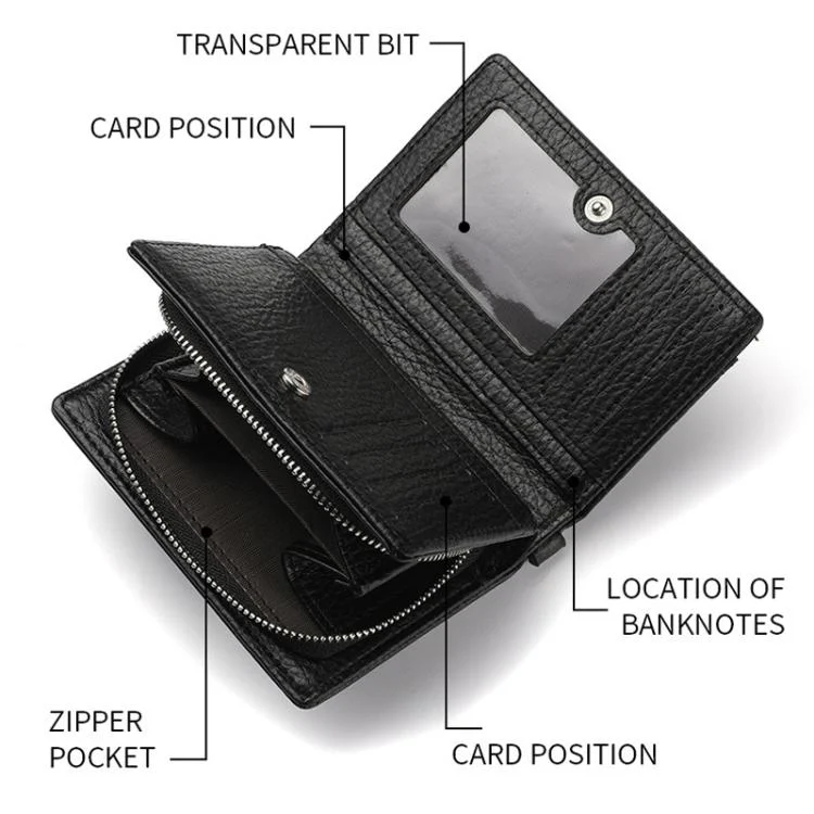 2. Internal structure: ID/card space + banknote space + zipper pocket