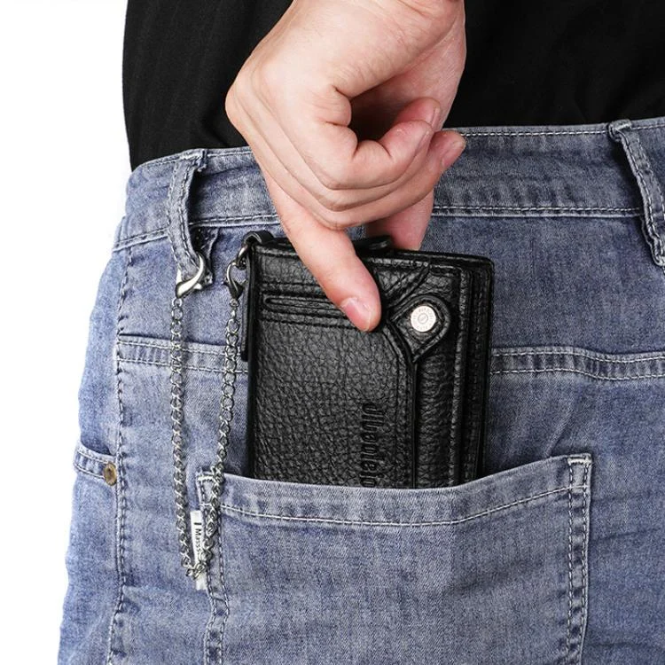 Dibaoleiou Men Anti-Theft Chain Wallet Retro Money Purse Driver License Card Bag Zipper Coin Purse