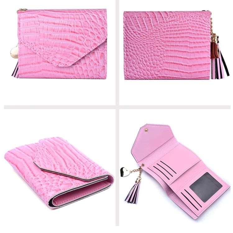 Ladies Wallet Tassel Trifold Crocodile Pattern Coin Purse Card Holder