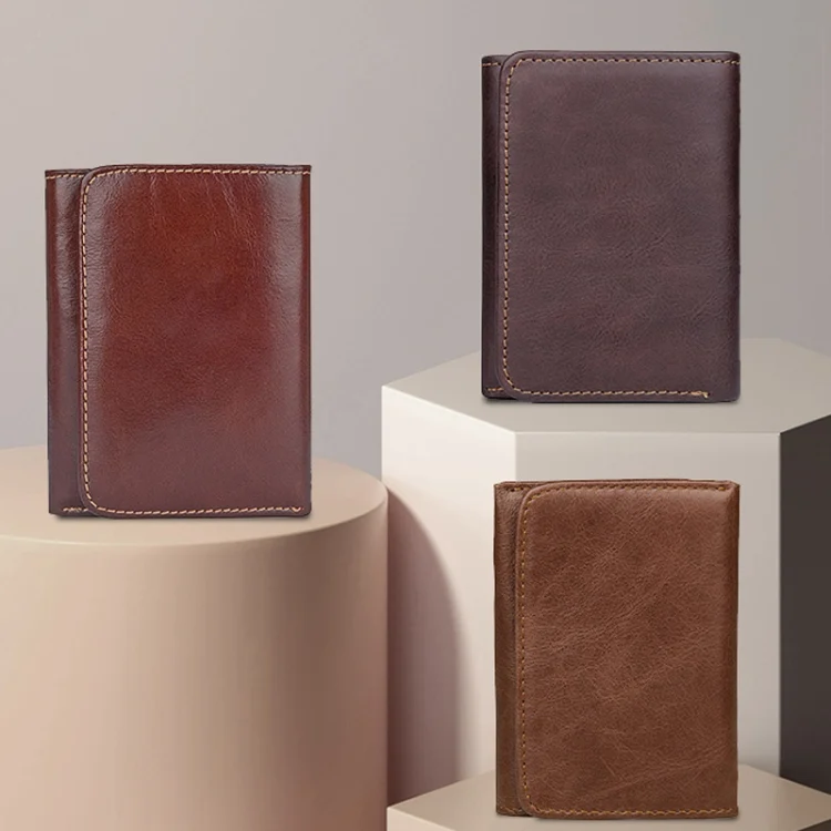 Men Casual Retro RFID Blocking Anti-Scanning Cowhide Leather Short Wallet