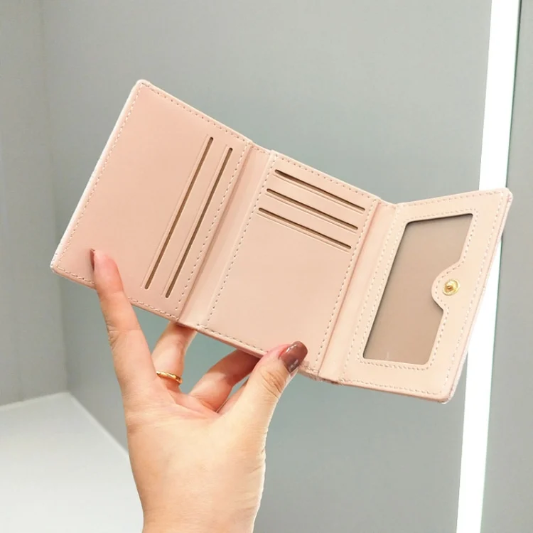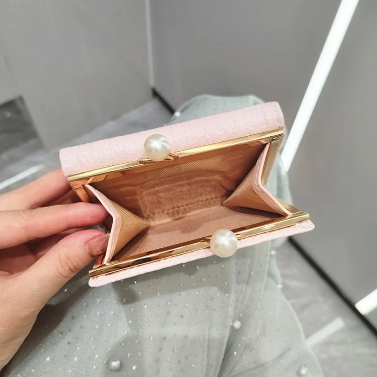Ruched Textured Bow Pearl Clip Tri-Fold Short Wallet