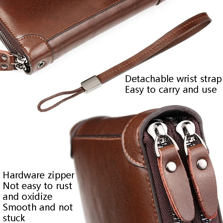 5. Features: hardware zipper, not easy to rust and oxidize, smooth and not stuck, detachable wrist strap, easy to carry and use, forged with retro wax leather, flexible and delicate, compartmental storage design, large capacity, corner stitching, beautiful exquisite