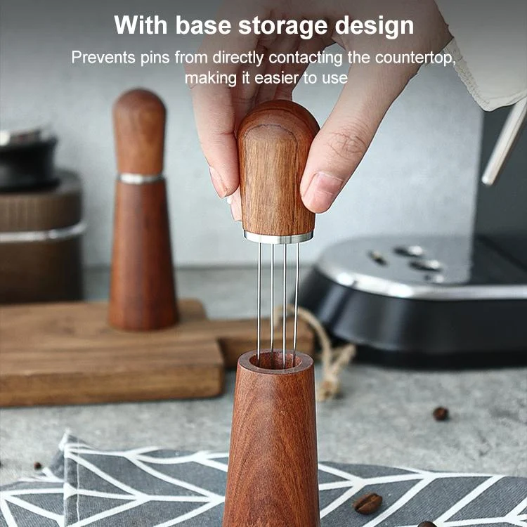 Solid Wood Stand Stainless Steel Coffee Loose Powder Needle