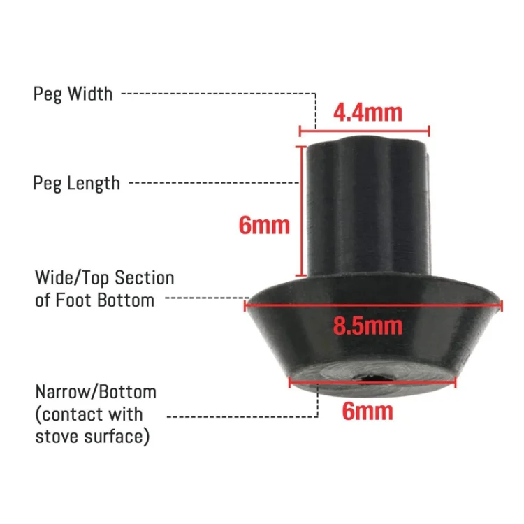 4. Easy to install: Turn the grate over, pop out the old legs, and install the new parts in place. It is recommended to apply high temperature silicone or adhesive to the rubber pad. Note: When installing, please wait for the stove and grate surfaces to cool down to avoid burns.