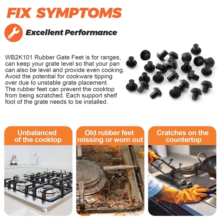 1. WB2K101 rubber door feet for stovetops keep your grates level so your pots are level as well and provide even cooking.