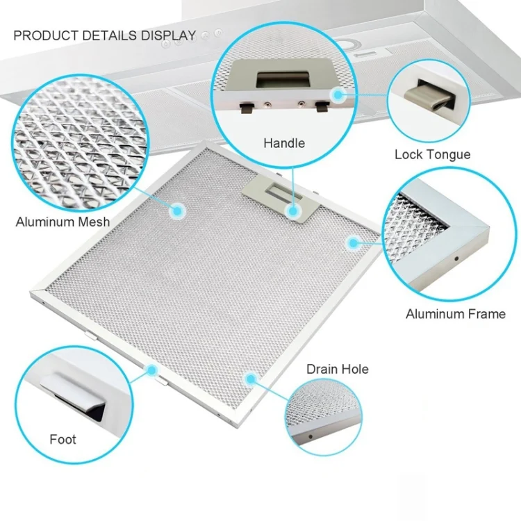 2. This grease filter is made of high-quality aluminum, and the 4-layer wire weaving increases the attachment area, which can effectively absorb more grease and purify the air.