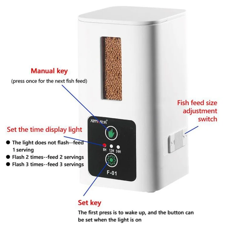 4. 400ml/180g large capacity food compartment, suitable for 1-4mm pellets