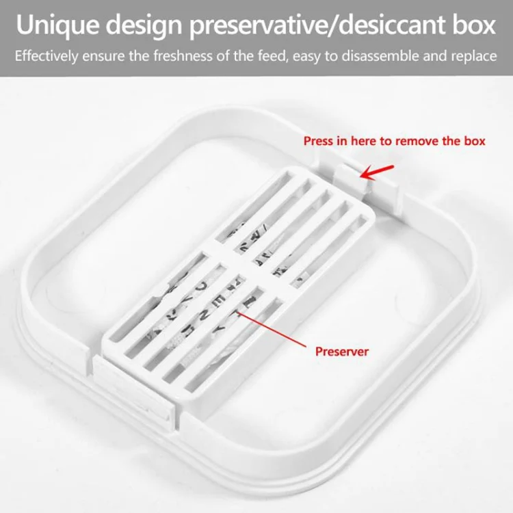 3. With freshness/desiccant box design, effectively ensure the freshness of the feed, easy to disassemble and replace.