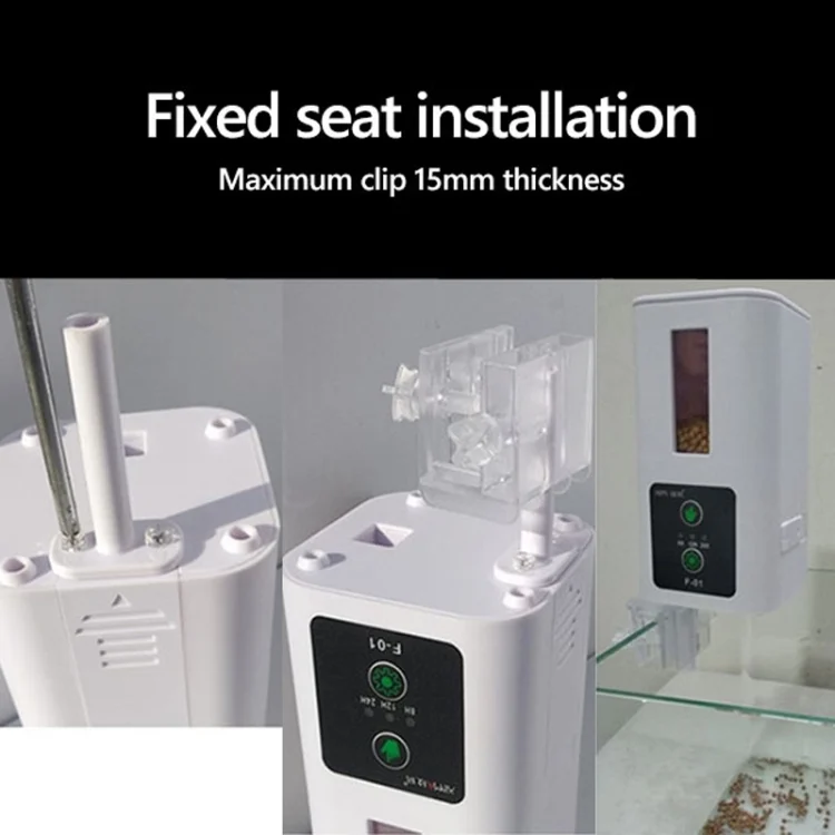 2. Two installation methods, simple and easy to operate. covered aquarium: directly placed in the feeding port of the closed aquarium; uncovered aquarium: bracket fixed on the wall of the aquarium, the height of the main body can be adjusted up/down/rotated