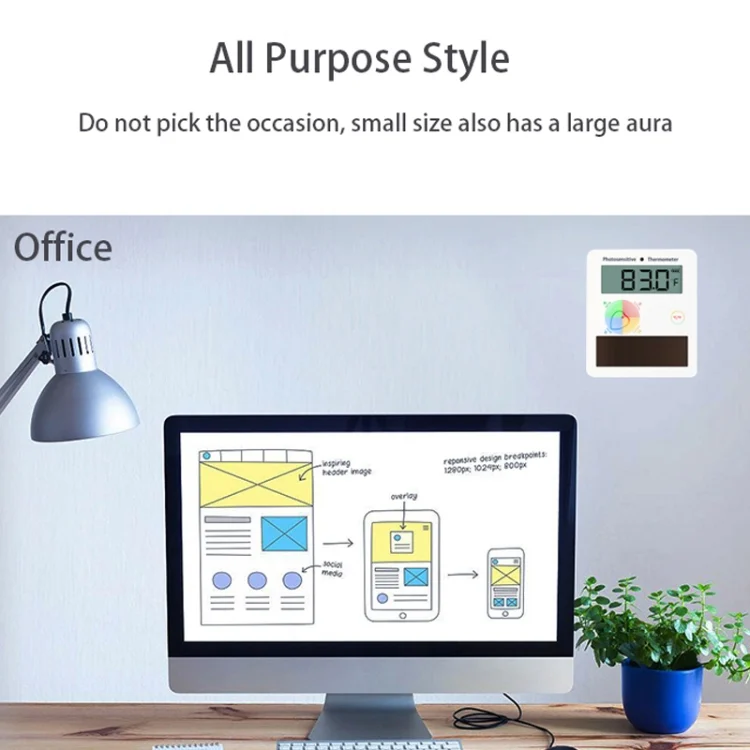 Pcsensor Fish Tank Indoor Solar Cell-free LCD High-precision Light Energy Thermometer