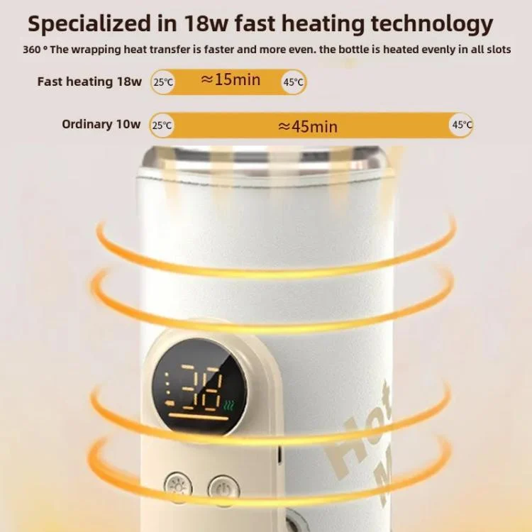 5. 18W ultra-fast charging and fast heating: Support USB/Type-C fast charging, 360-degree surround uniform heating, and quick warming of milk in 3-5 minutes.