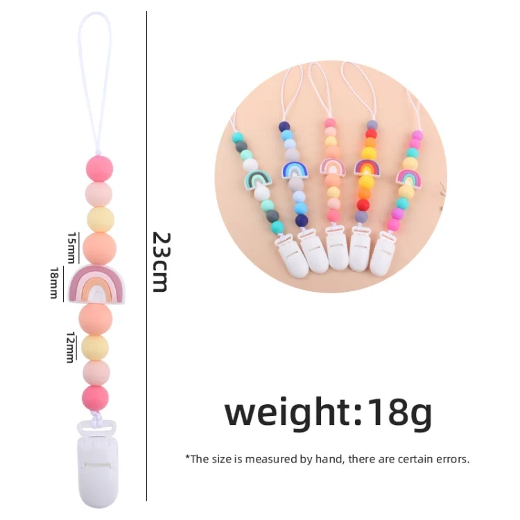 Baby Anti-drop Chain Pacifier Clips Silicone Rainbow Beads Dummy Holder Nipple Clip
