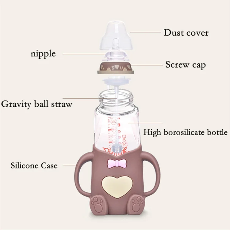 Baby Silicone Glass Bottles Drop-proof and Flatulence-proof Glass Baby Bottle