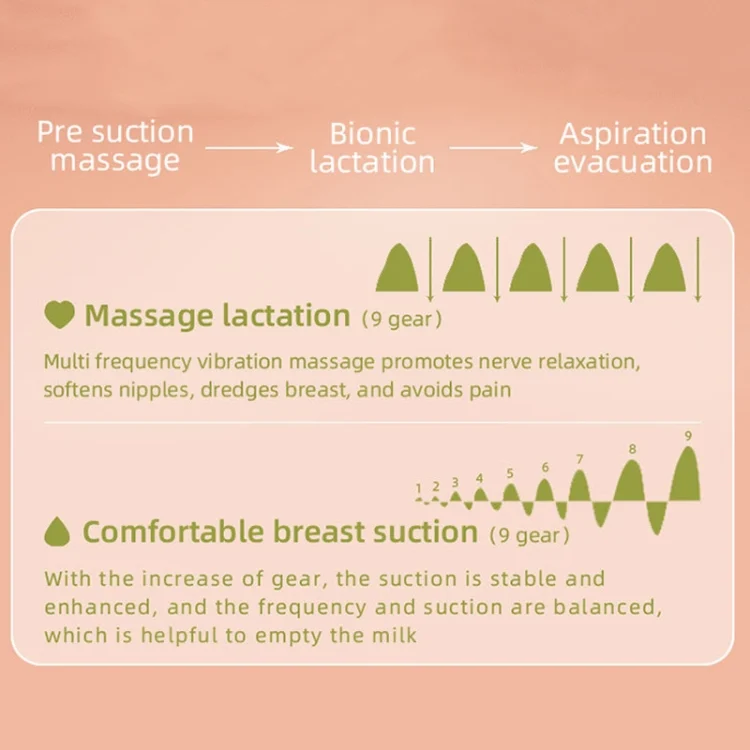 5. Two modes: massage/breast pumping, 9 gears, you can adjust them freely