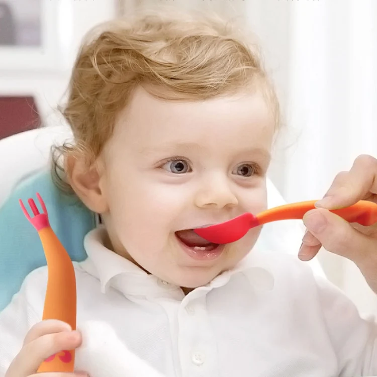Baby Learning To Eat Bending Training Elbow Twisting Spoon Fork