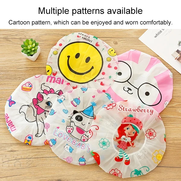 3 PCS Cute Cartoon Shower Bath Cap Saunas Lace Elastic Band Cap Hair Protective Cap