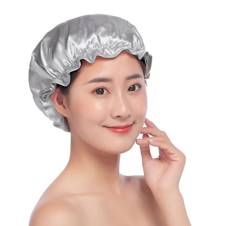 Lovely Thick Women Satin Colorful Double Waterproof Hair Cover Bathing Cap