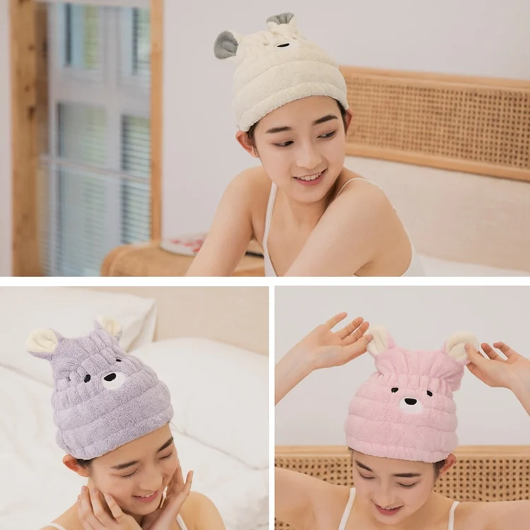 Microfiber Coral Velvet Cartoon Quick Dry Hair Cap