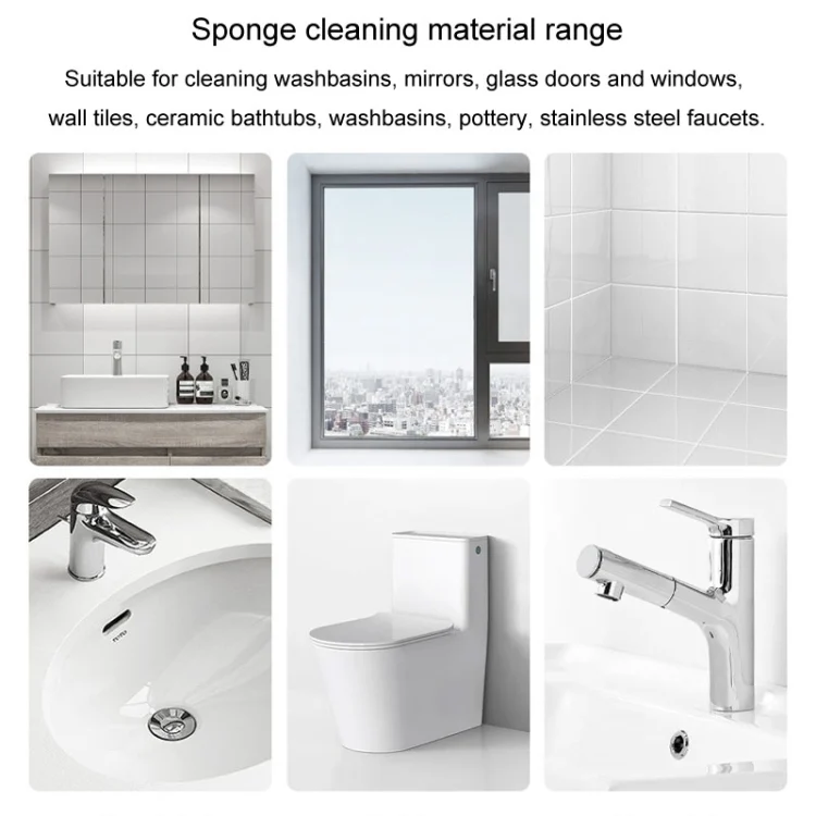 7. Wide range of applications, suitable for cleaning washbasin / mirror glass doors and windows / wall tiles / ceramic bathtubs / washbasins / pottery products / stainless steel faucets