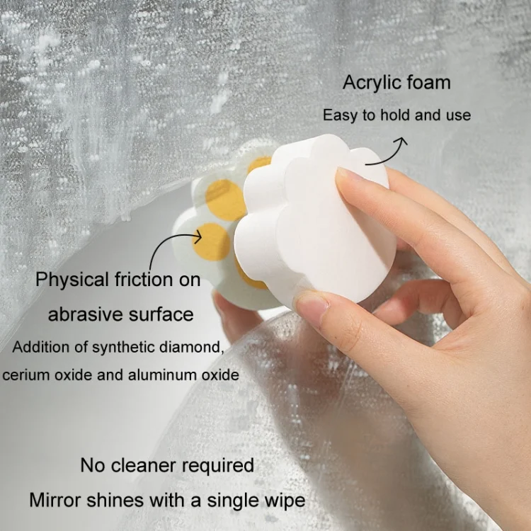 2. Selection of materials, active oxides decomposition of stains and physical friction, easy to remove stains, soap scum, etc. adhered to the surface of the mirror