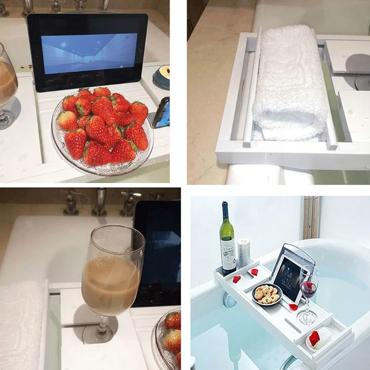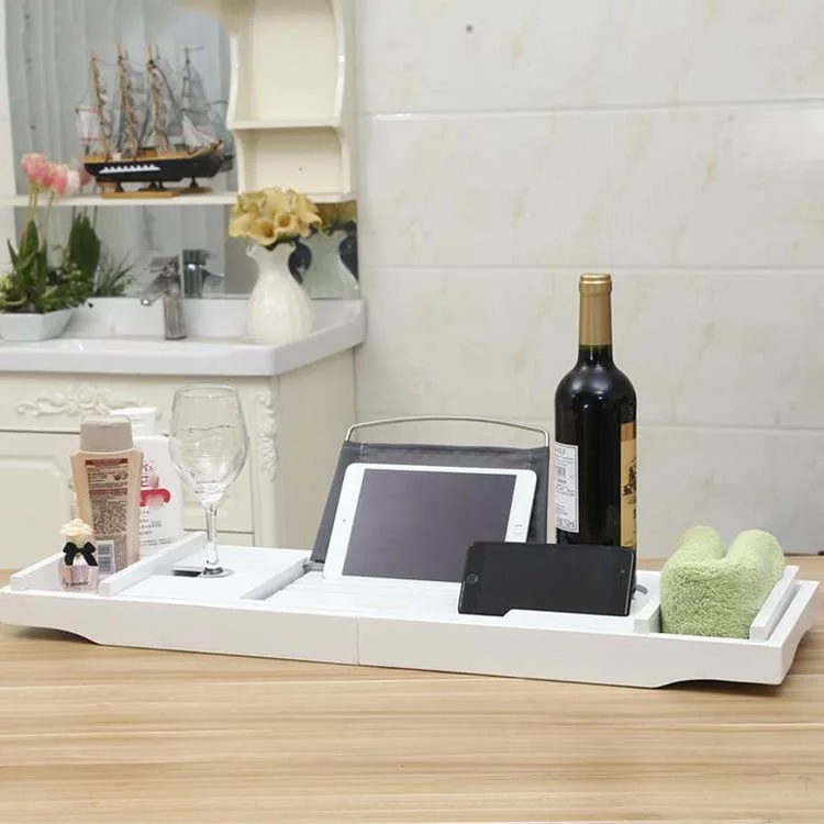 Bamboo Bathtub Rack Retractable Bathtub Tray Multi-function Soaking Bracket