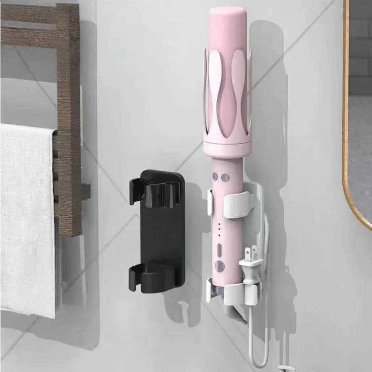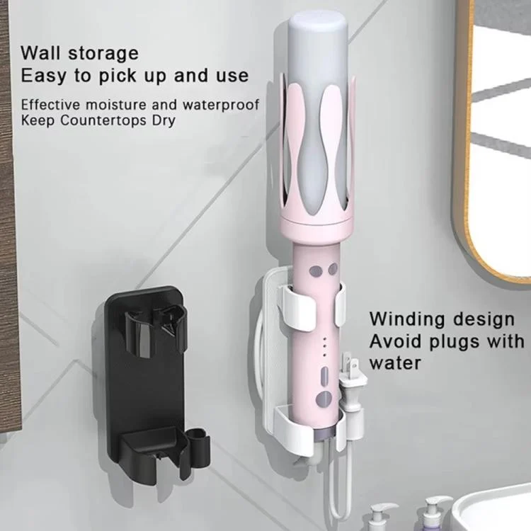Bathroom Wall-Mounted Curling Iron Organizer Holder with Adjustable Clamps Built-In Cord Wrap