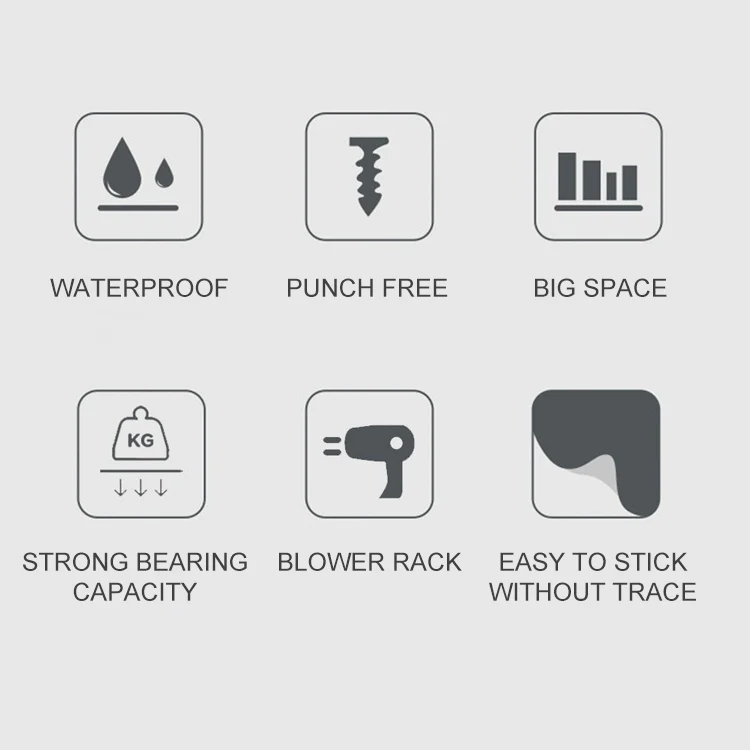 5. Features: waterproof and moisture-proof, nail-free and drill-free, large space storage, easy to paste and no trace