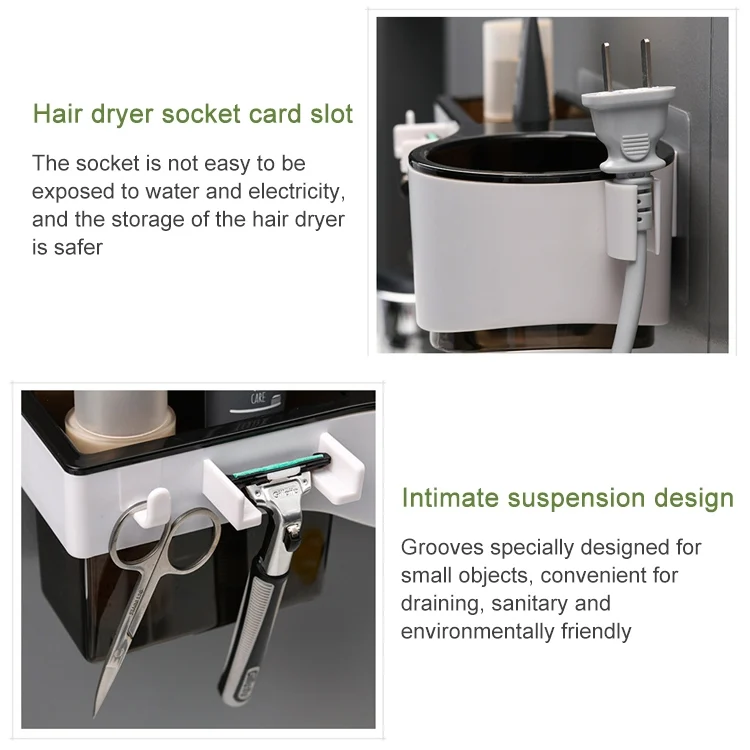 Hairdryer Hanger Free Punch Wall Mounted Bathroom Multi-function Toilet Storage Rack
