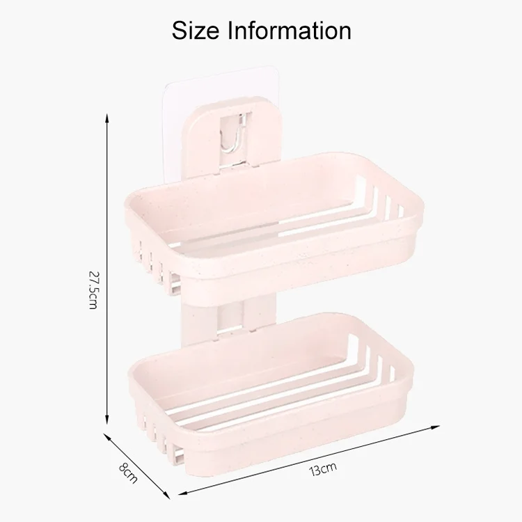 Wall Hanging Traceless Double-deck PP Soap Holder Bathroom Storage Shelf