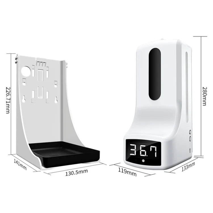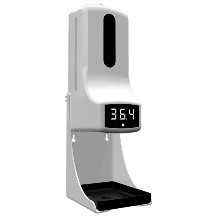 K9 Pro Handsfree Non-contact Body Light-sensitive Distance Sensor Thermometer + 1000ml Automatic Non-contact Liquid Soap Dispenser with Base Mount