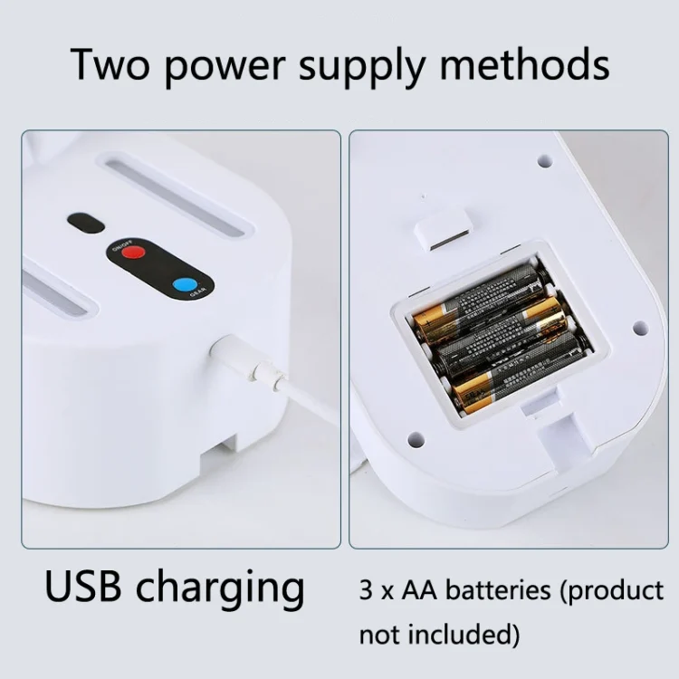 10. Power supply mode: charging type: USB charging, battery type: 3 AA batteries (product not included)
