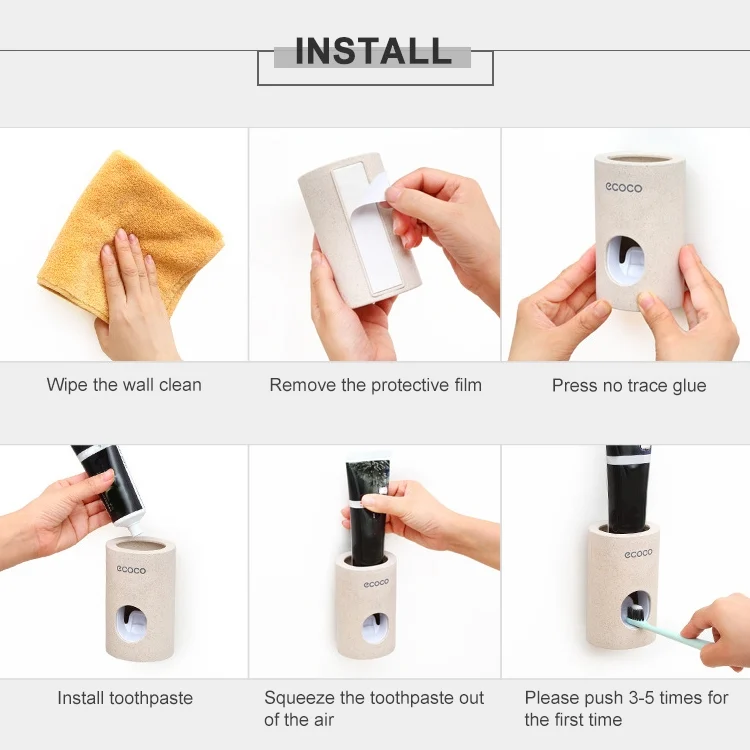 ECOCO Wheat Straw Wall-mounted Seamless Stickers Lazy Automatic Toothpaste