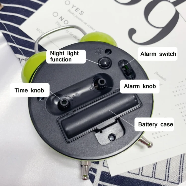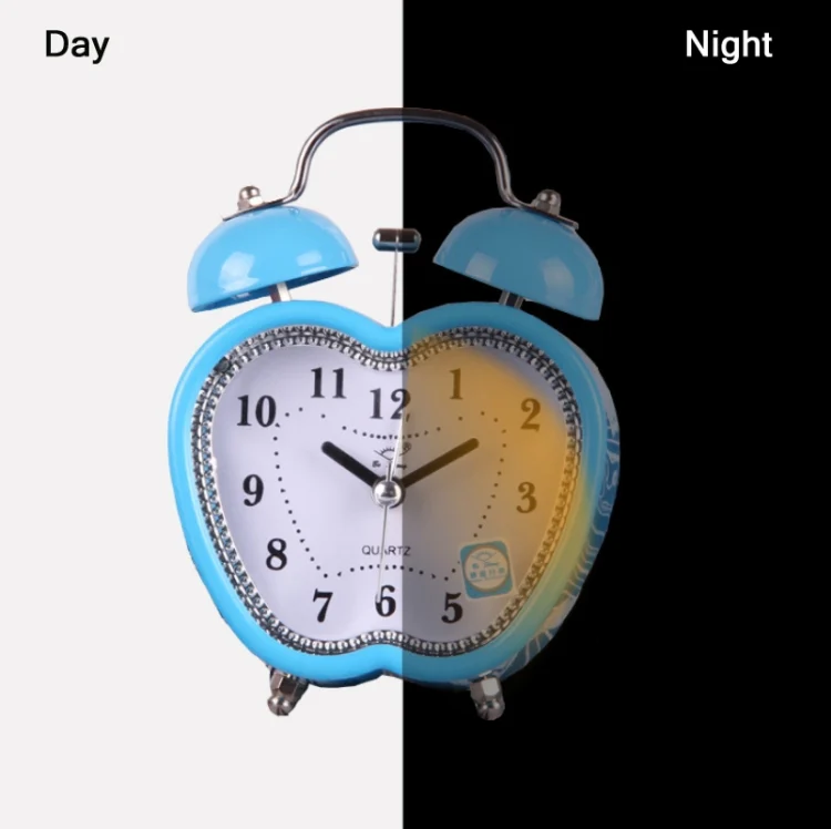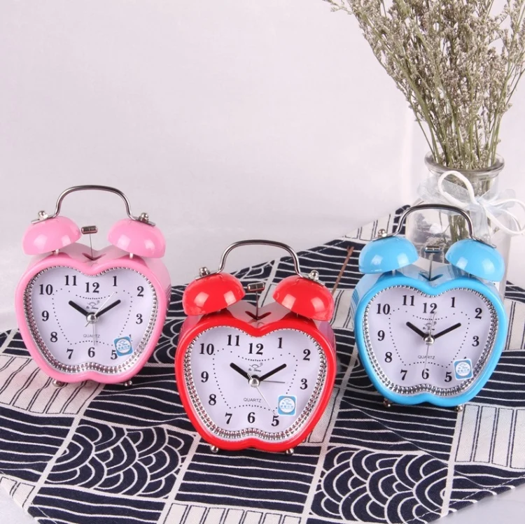 Children Cartoon Apple-Shaped Bedside Mute Desk Clock Metal Bell Digital Alarm Clock