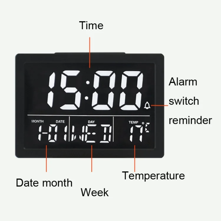Large Screen LED Clock Bedside Multifunctional Electronic Alarm Clock