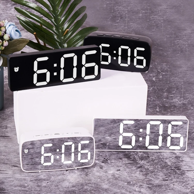 Mirror Bedside Alarm Clock Battery Plug-In Dual-Purpose LED Clock