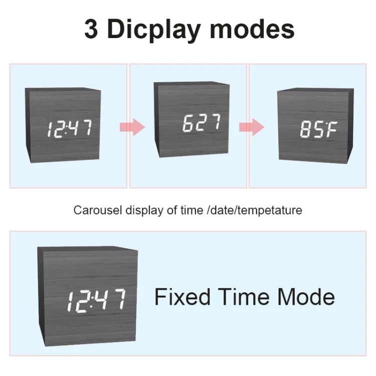 Multicolor Sounds Control Wooden Clock Modern Digital LED Desk Alarm Clock Thermometer Timer