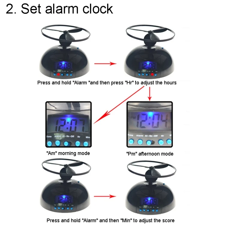 Student Multifunctional LED Flying Alarm Bells Lazy Flying Propeller Digital Alarm Clock