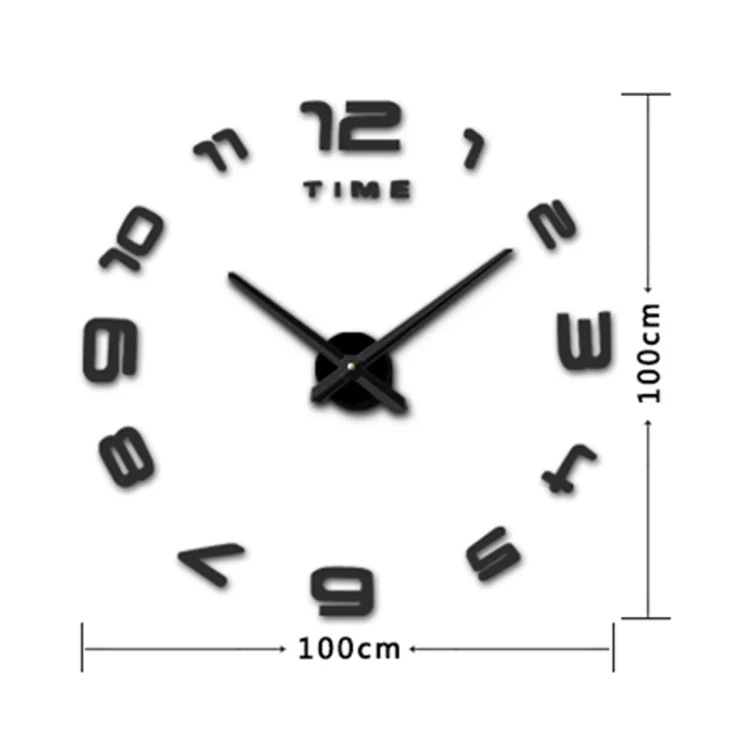 Bedroom Home Office Decoration Modern Frameless Large Number DIY 3D Mirror Wall Sticker Quiet Clock, Size: 100*100cm