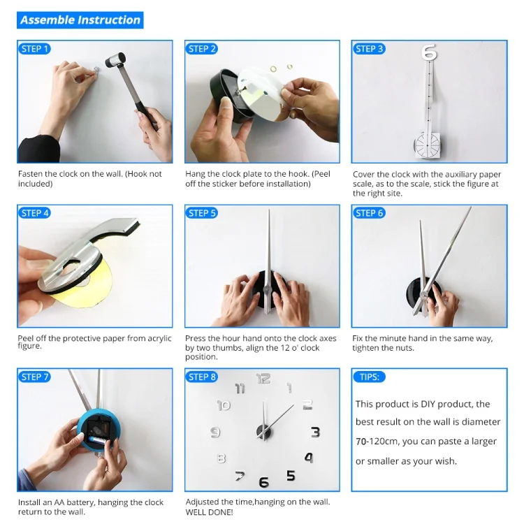 7. Hands: minute hand is about 39cm long, hour hand is about 31.5cm long