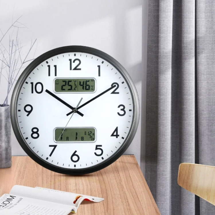 13 Inch Dual-screen LED Display Wall Clock Living Room Temperature And Humidity Calendar Multi-function Clock