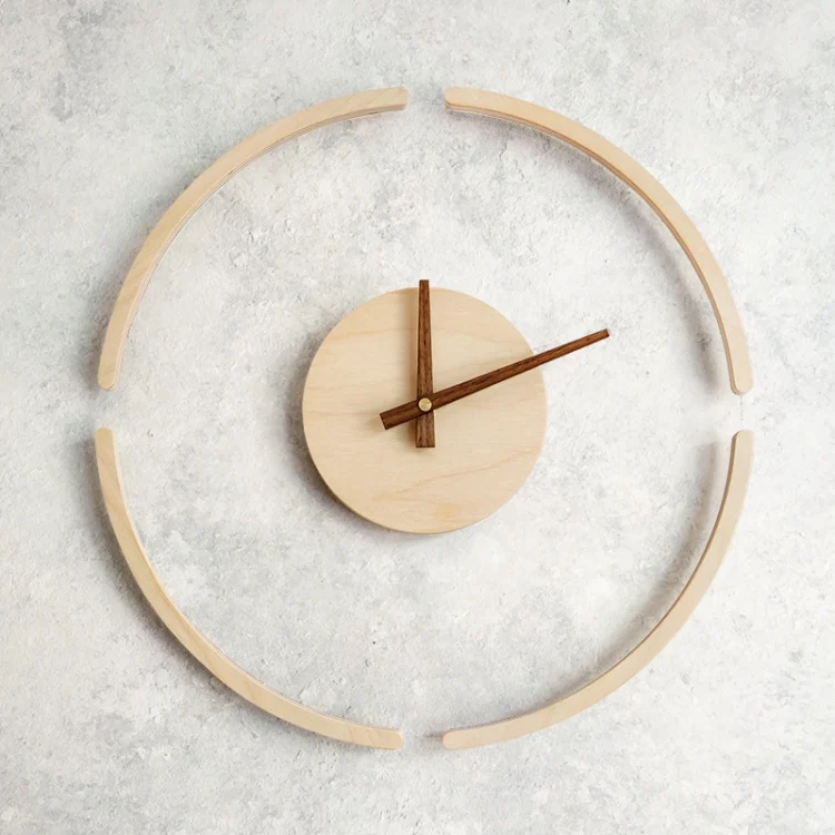 14 inch Transparent Floating Wall Clock Wooden Clocks Home Living Room Wall Decoration