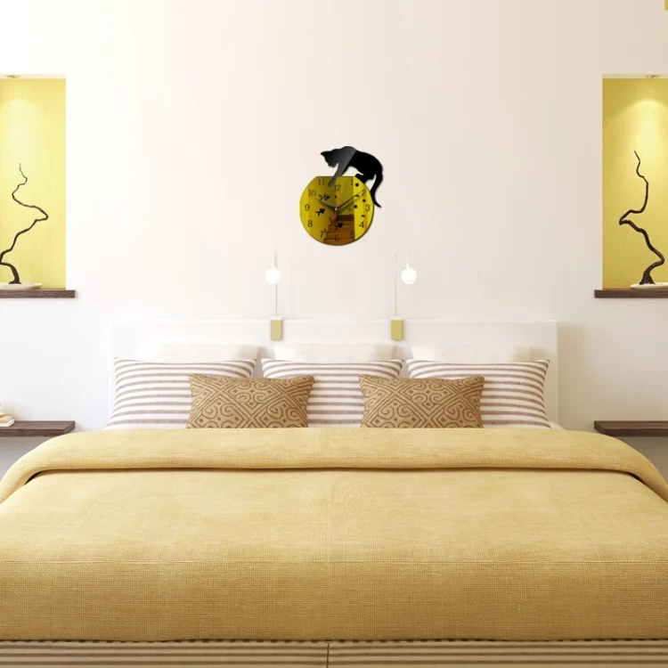 3D Acrylic Cat Mirror Wall Clock DIY Fashion Home Decoration