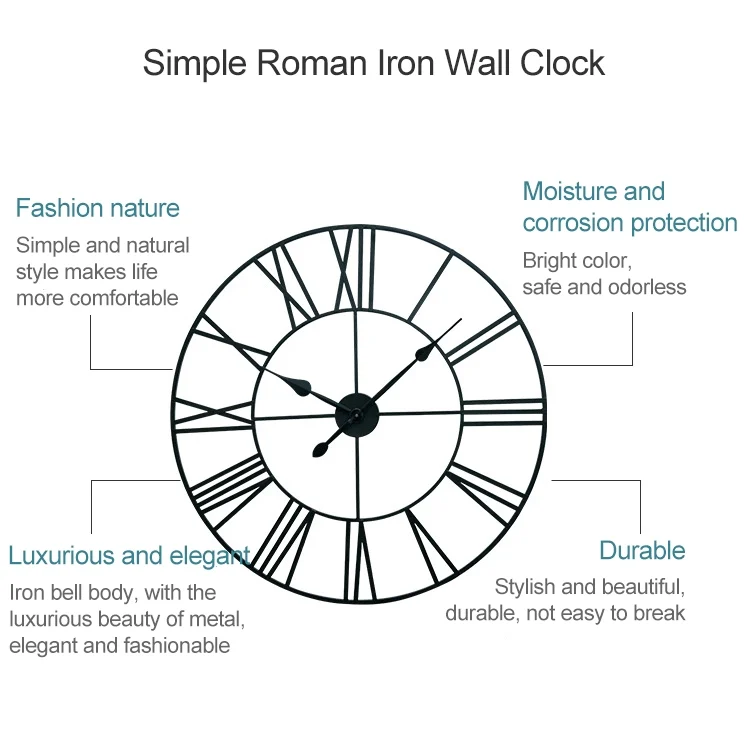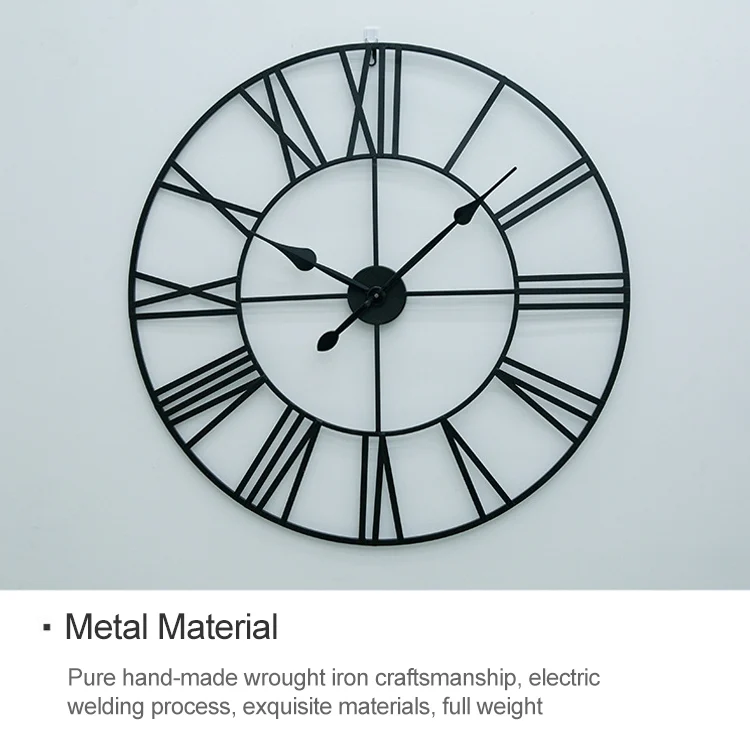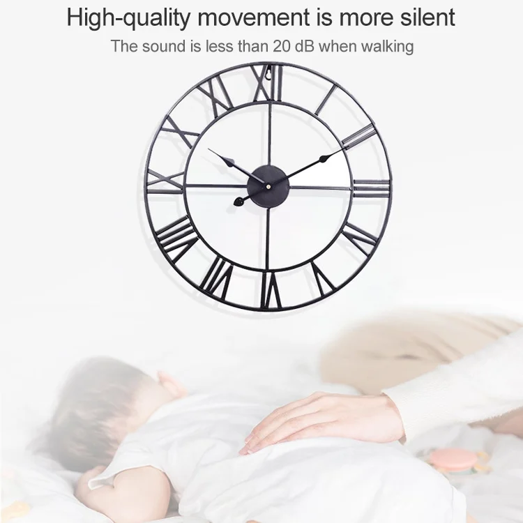 60cm Retro Living Room Iron Round Roman Numeral Mute Decorative Wall Clock