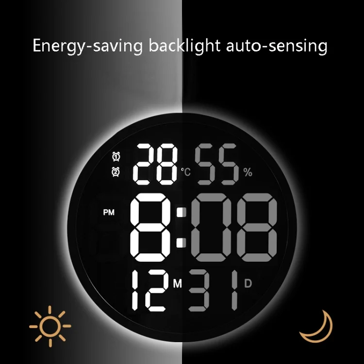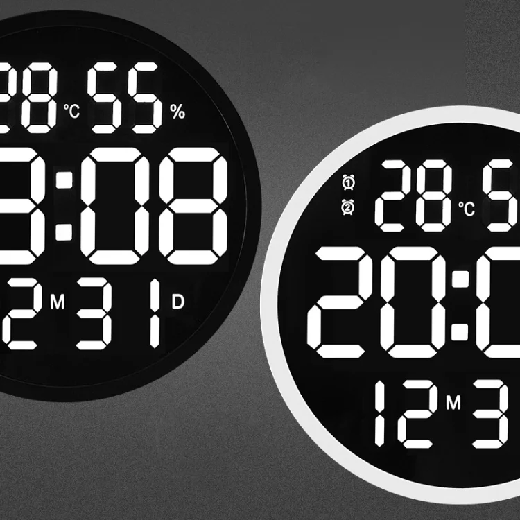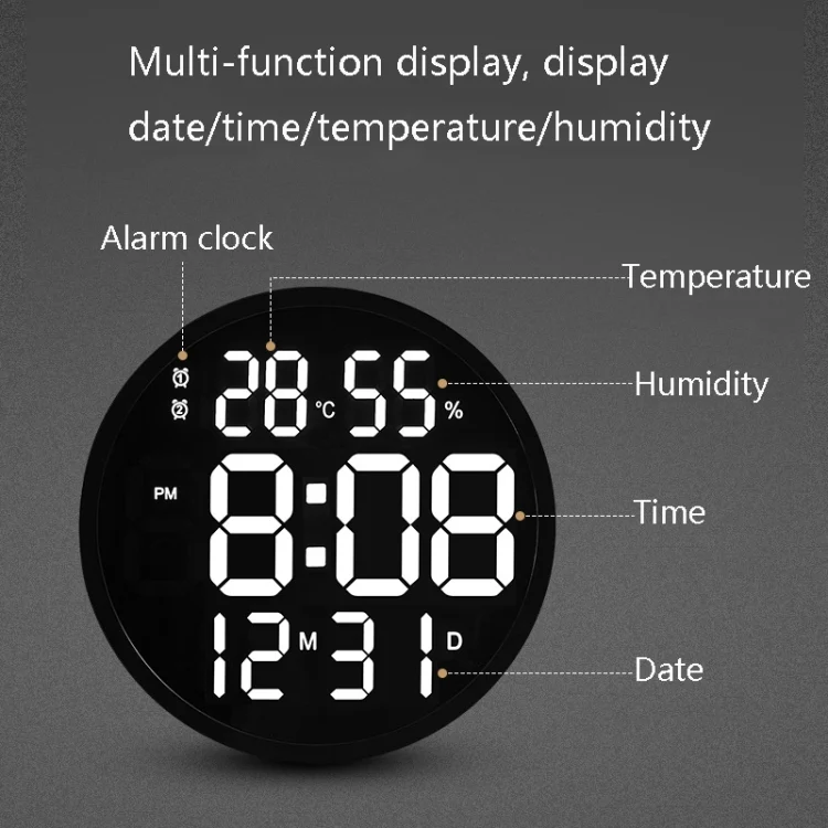 6620 12 Inch LED Simple Wall Clock Living Room Round Silent Digital Temperature And Humidity Electronic Clock