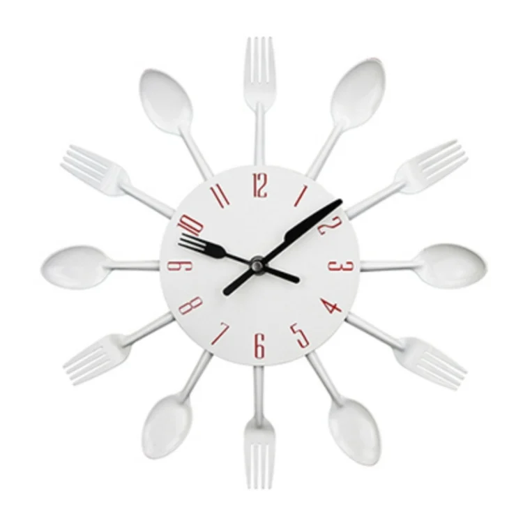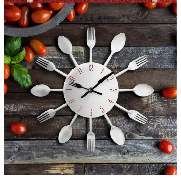 Cutlery Metal Kitchen Wall Clock Spoon Fork Creative Quartz Wall Mounted Clocks Modern Design Decorative Horloge